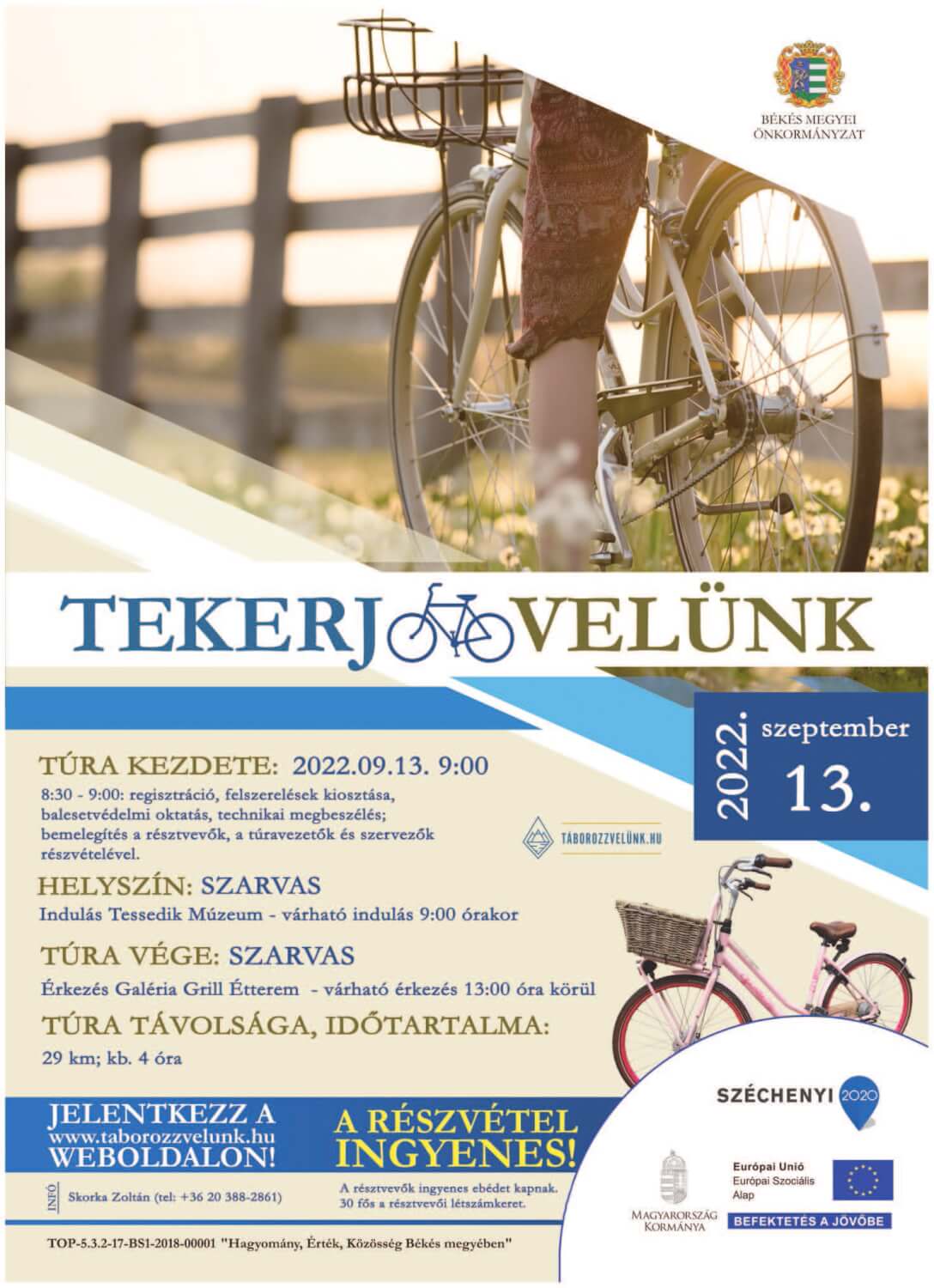 TEKERJ VELÜNK! Kerékpártúra Szarvasról Békésszentandrásra és vissza településen.