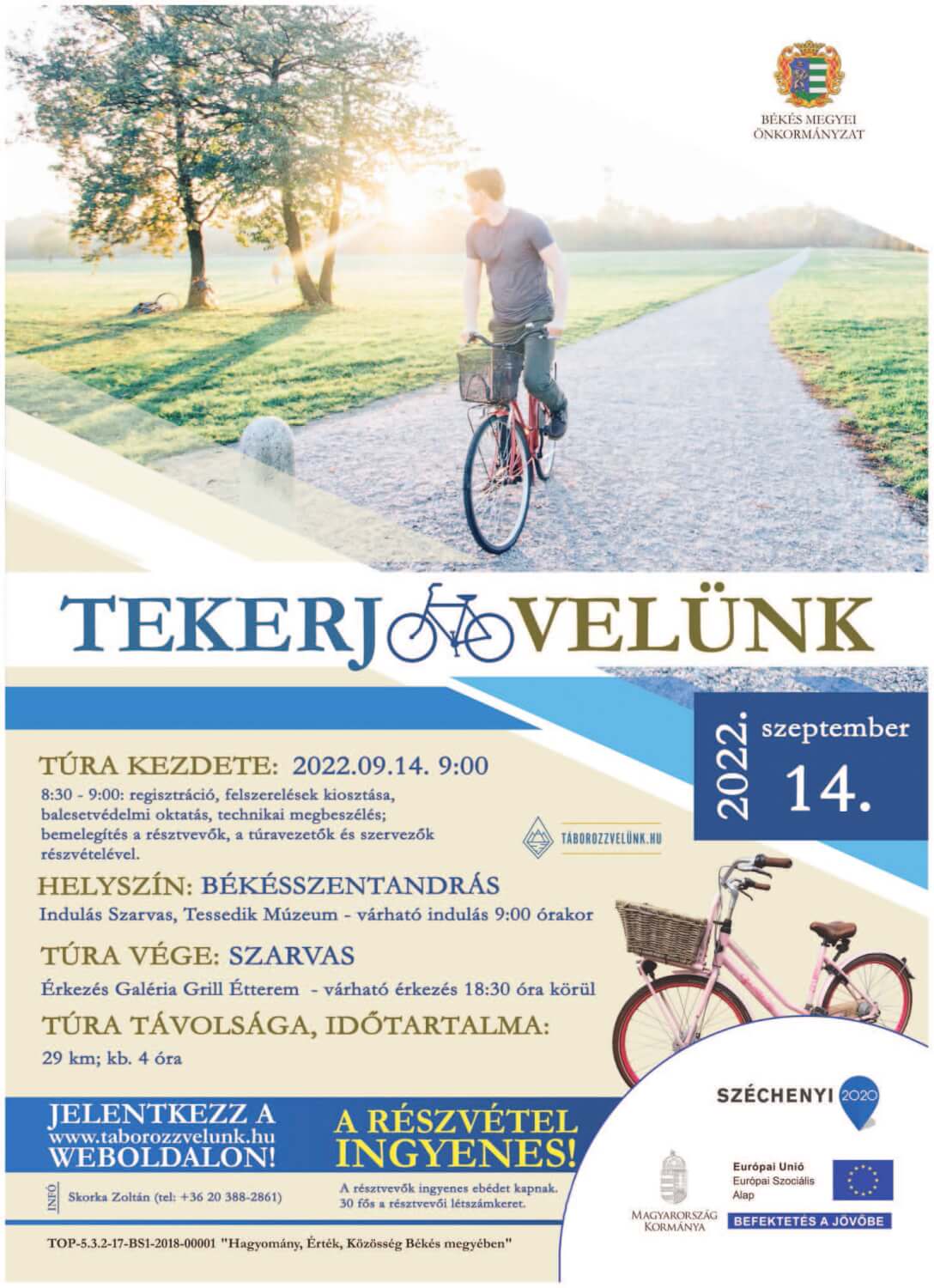 TEKERJ VELÜNK! Kerékpártúra Szarvasról Békésszentandrásra és vissza településen.