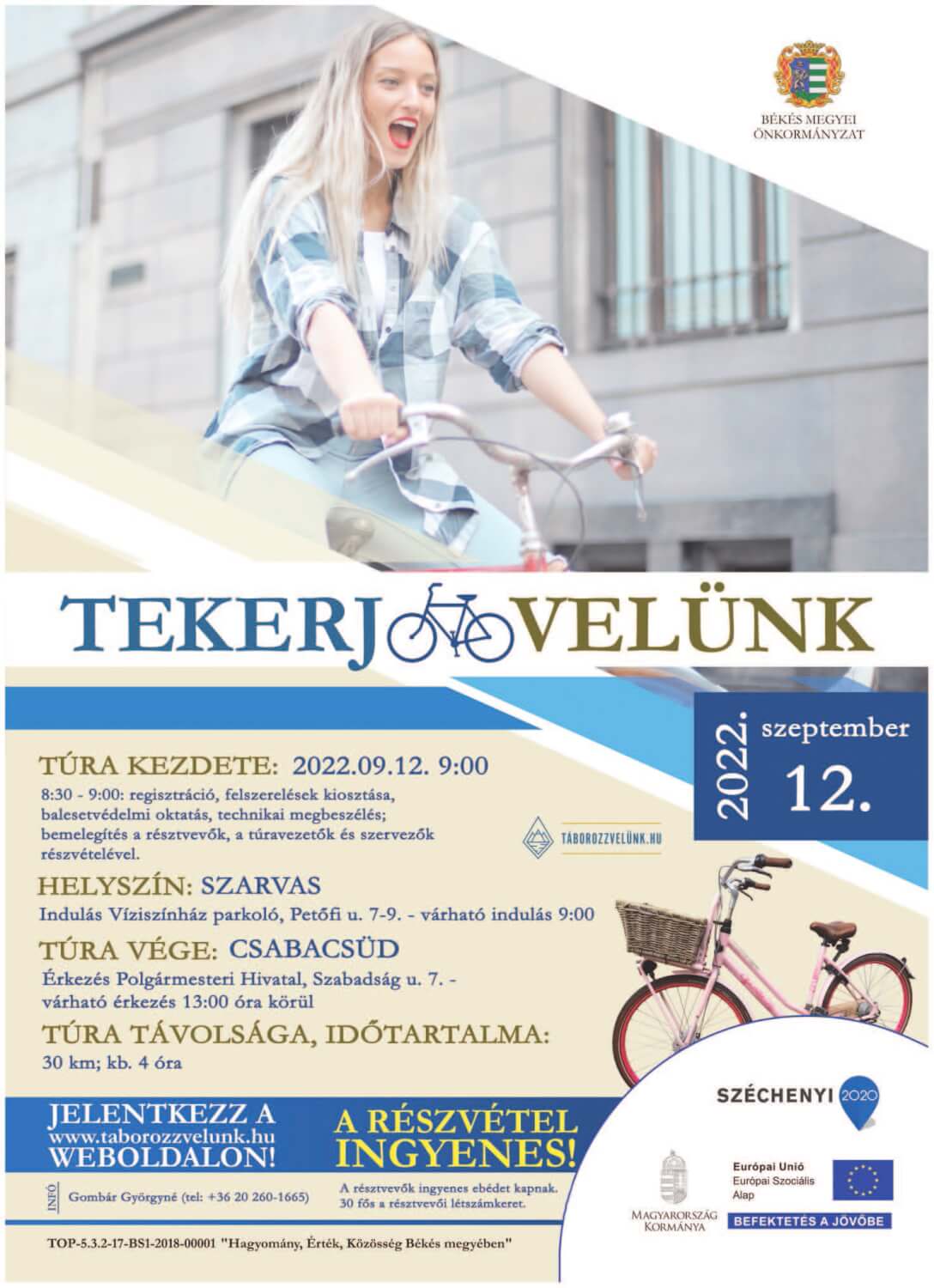 TEKERJ VELÜNK! Kerékpártúra Szarvasról Csabacsüdre.